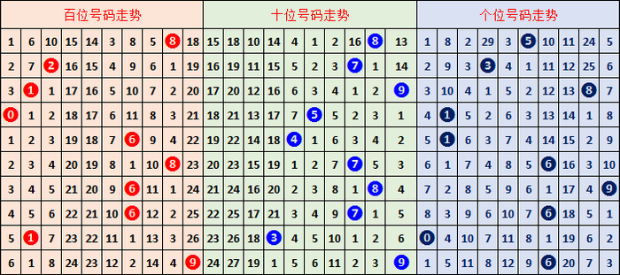 跨度分析:近10期跨度为:3,5,8,5,5,2,3,1,3,3,与前一期相比没有点位变化,本期预测跨度值上升,看好跨度6。